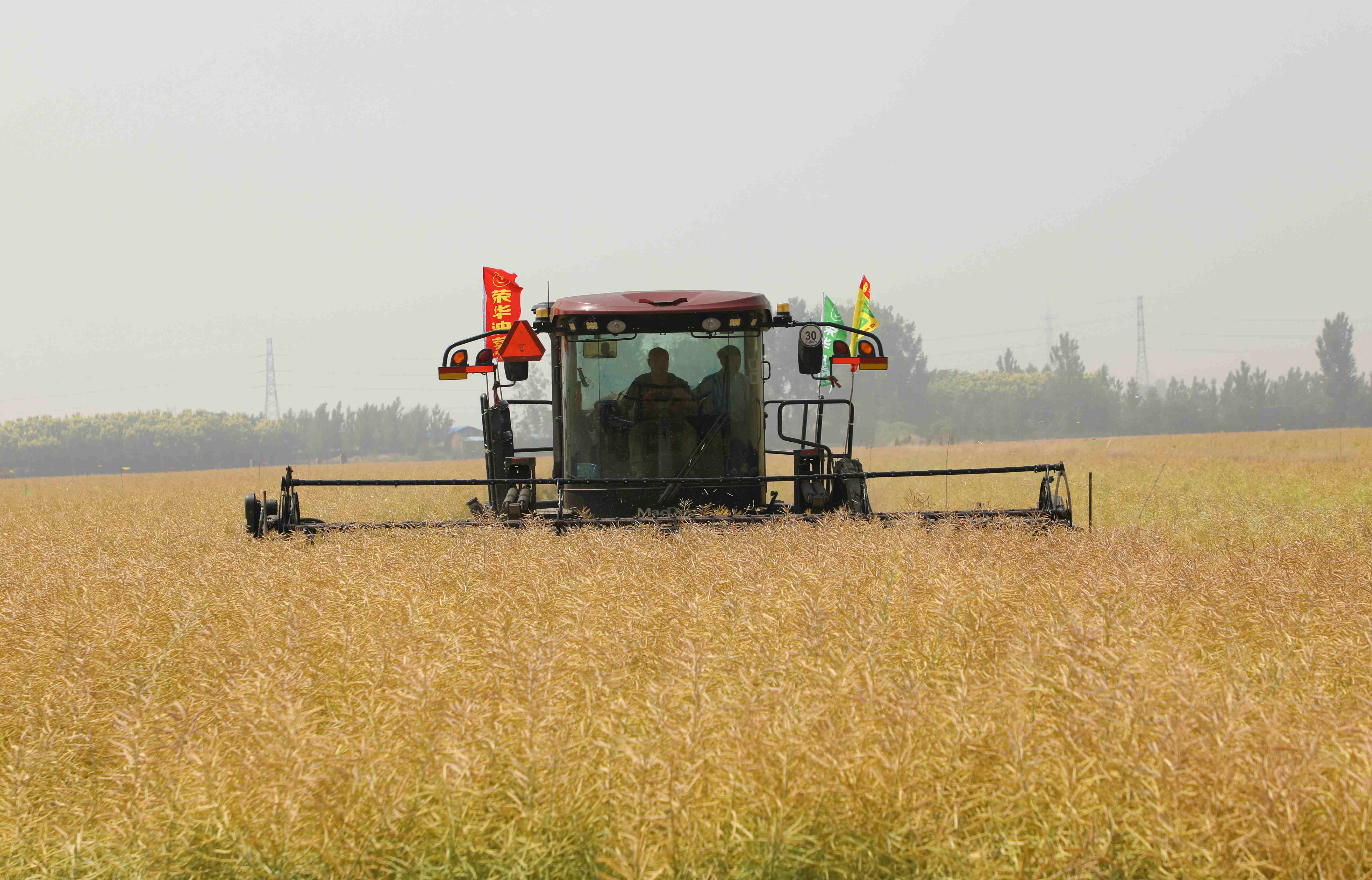 5月26日,河南省新鄉(xiāng)市鳳泉區(qū)大塊鎮(zhèn)東莊村的6000畝金鳳凰油菜喜獲豐收。金燦燦的油菜莢顆粒飽滿、壓彎枝干。種植戶正用大型機械收割、撿拾,確保顆粒歸倉。