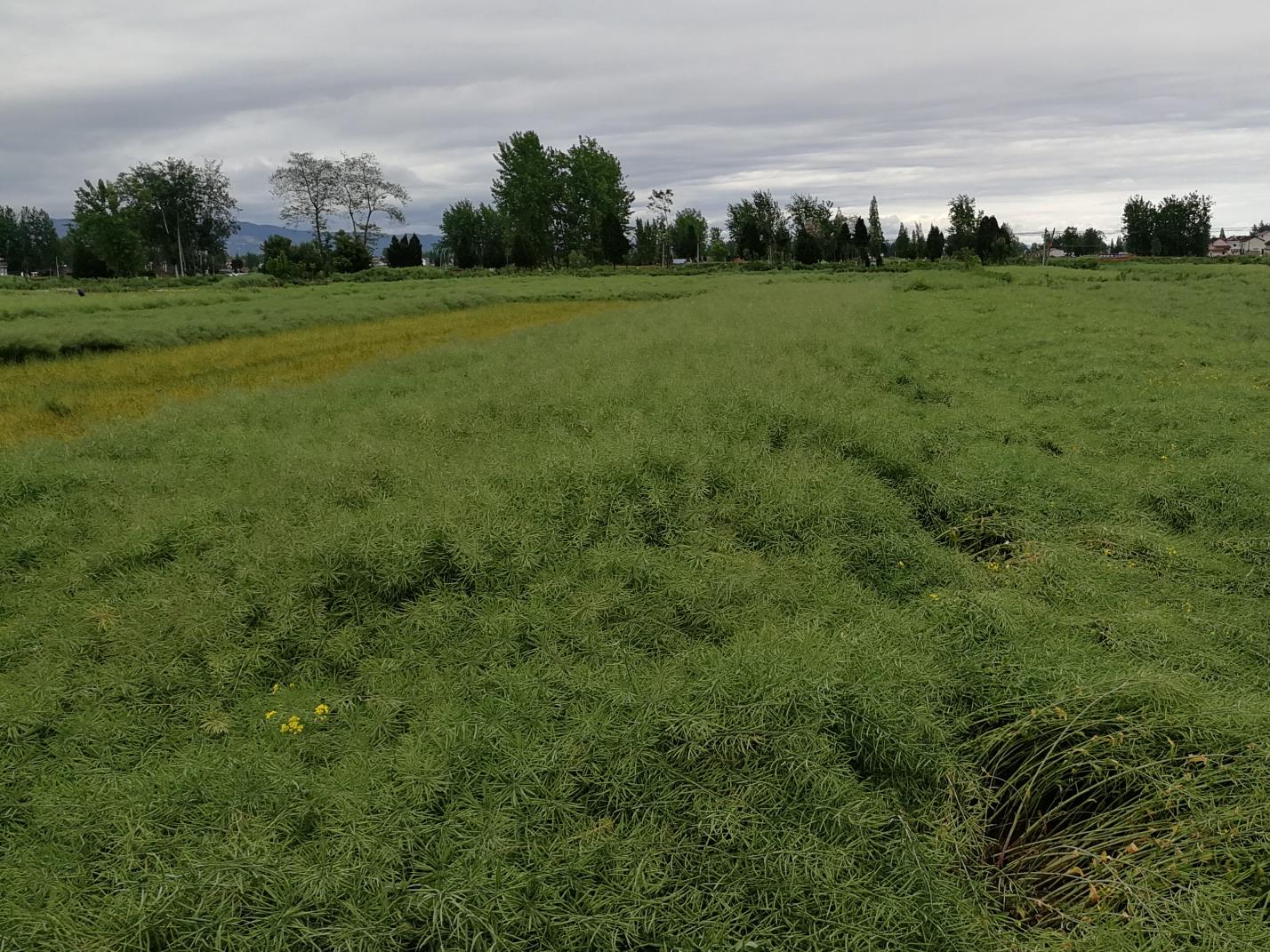 特征特性:甘藍(lán)型半冬性油菜雜交種。全生育期226天。幼苗半直立,子葉腎臟形,苗期葉綠色,葉緣微紫,裂葉2~4對(duì),頂裂葉片近橢圓形,微披蠟粉,葉片無(wú)刺毛;苔莖淺紫色;花色黃,花瓣側(cè)疊;籽粒黑褐色,近圓形。平均株高134.6厘米,勻生分枝類型,一次分枝7.8個(gè),單株有效角果數(shù)252.6個(gè),每角粒數(shù)19.0粒,千粒重4.34克??咕瞬?中抗病毒病,抗寒性較好,抗裂莢性中等,抗倒性強(qiáng)。食用油芥酸含量0.1%~0.215%,硫苷含量22.22~23.57微摩爾/克,含油量47.56%