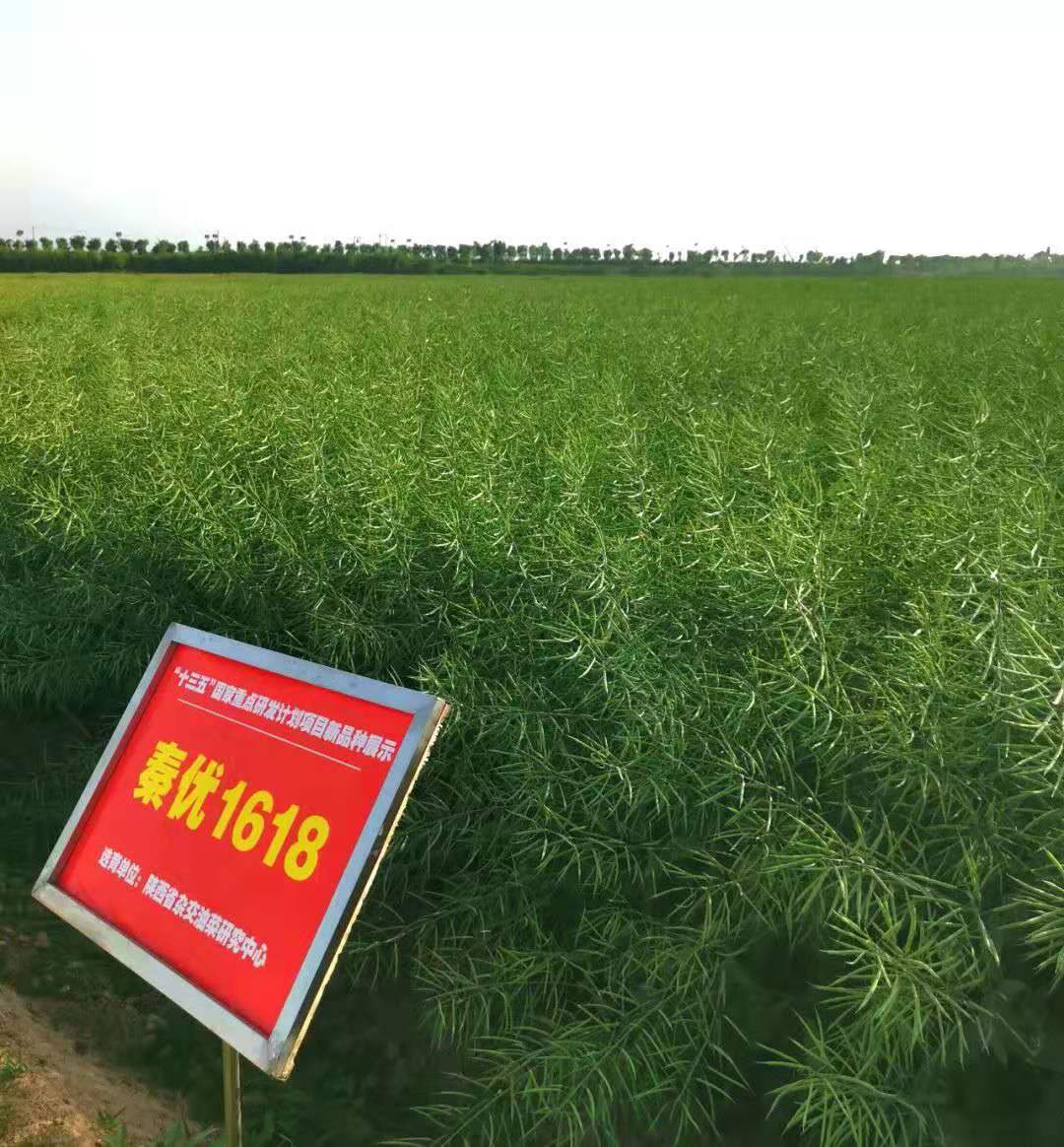 特征特性:雜交種。甘藍(lán)型。半冬性,中晚熟;主花序角果水平生長,角果長、籽粒大;莖稈綠色、成熟期角果黃色,花瓣大而側(cè)疊。在每畝2.5萬株密度下,株高168厘米左右,有效分枝部位56厘米,一次有效分枝6.9個,單株有效角果250個左右,角粒數(shù)23粒左右,千粒重4.25克,籽粒黑褐色。黃淮區(qū)平均生育期234.9天。硫苷含量27.65微摩爾/克,含油量46.76%。低感菌核病,中抗病毒病,中抗白粉病,抗倒性強(qiáng),抗寒性好,較抗裂莢。第1生長周期畝產(chǎn)226.96千克,比對照秦優(yōu)7號增產(chǎn)8.3%;第2生長周期畝產(chǎn)235.55千克,比對照秦優(yōu)7號增產(chǎn)8.8%。