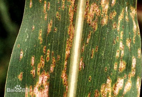 癥狀 玉米銹病是我國華南、西南一帶重要病害。主要侵染葉片,嚴(yán)重時(shí)也可侵染果穗、苞葉乃至雄花。初期僅在葉片兩面散生淺黃色長形至卵形褐色小膿疤,后小皰破裂,散出鐵銹色粉狀物,即病菌夏孢子;后期病斑上生出黑色近圓形或長圓形突起,開裂后露出黑褐色冬抱子。